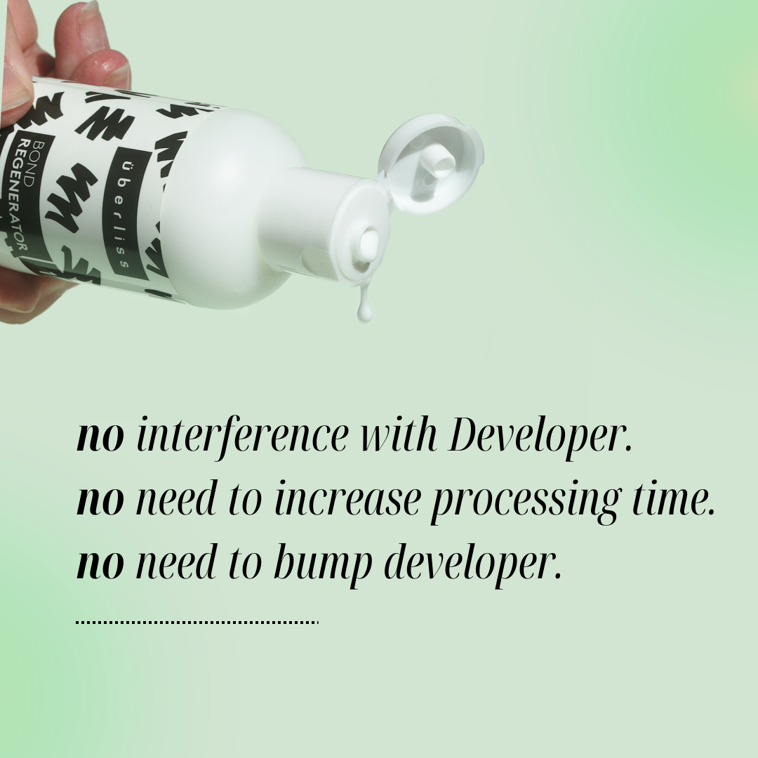 step #1 of the Uberliss Bond Treatment. essential for color processing and lightening, great for blonde or balayage clients. safely bleach hair without worry with our safe and gentle formula.