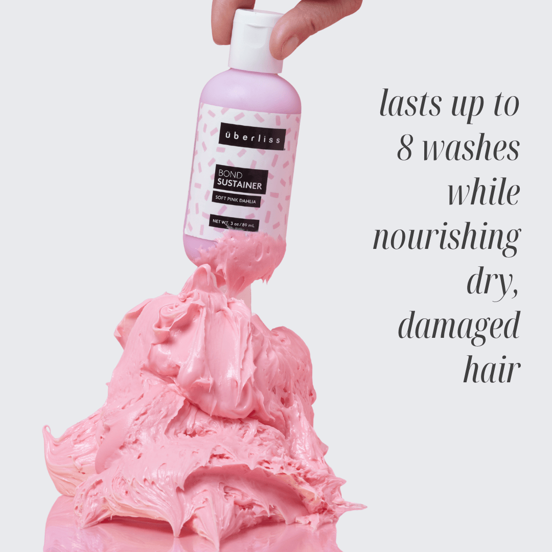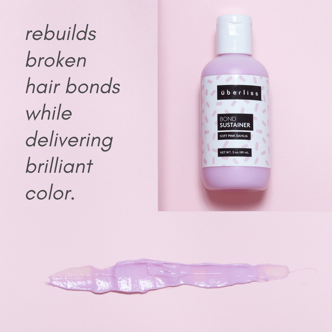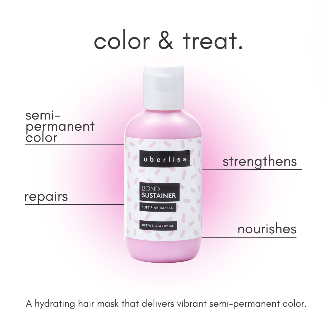 Bond Sustainer Soft Pink Dahlia deposits vibrant color that lasts up to 8 washes while nourishing dry, damaged hair and regenerating broken hair bonds.